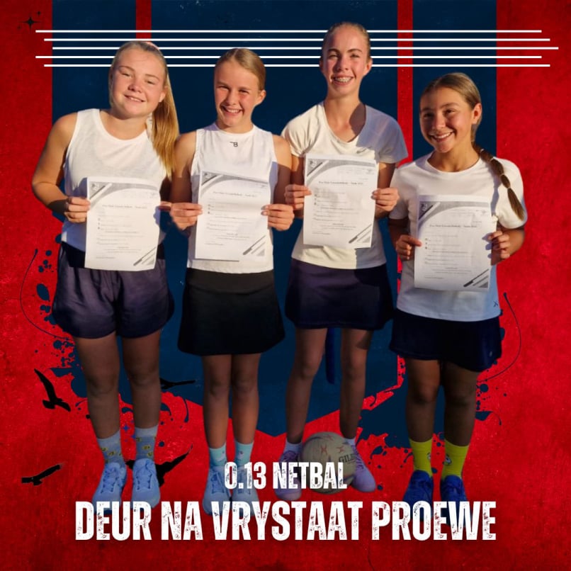 Ons skool se netbalspanne het van 26 tot 28 Maart aan 'n opwindende netbaltoer deelgeneem. Die leerders het hul vaardighede en spanwerk ten toon gestel en uitstekende sportmangees getoon. Die toer was lekker en het ons spanne die geleentheid gegee om teen verskeie ander skole mee te ding en waardevolle ervaring op te doen. Ons is trots op elke speler en sien uit na nog vele suksesvolle toernooie in die toekoms.