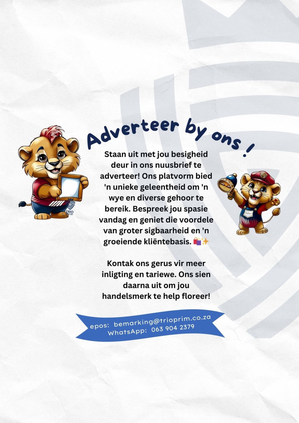 Trio Primêr se Omgeegroep se harte klop warm vir ons medemens. Ons wys graag ons liefde op ‘n tasbare manier.